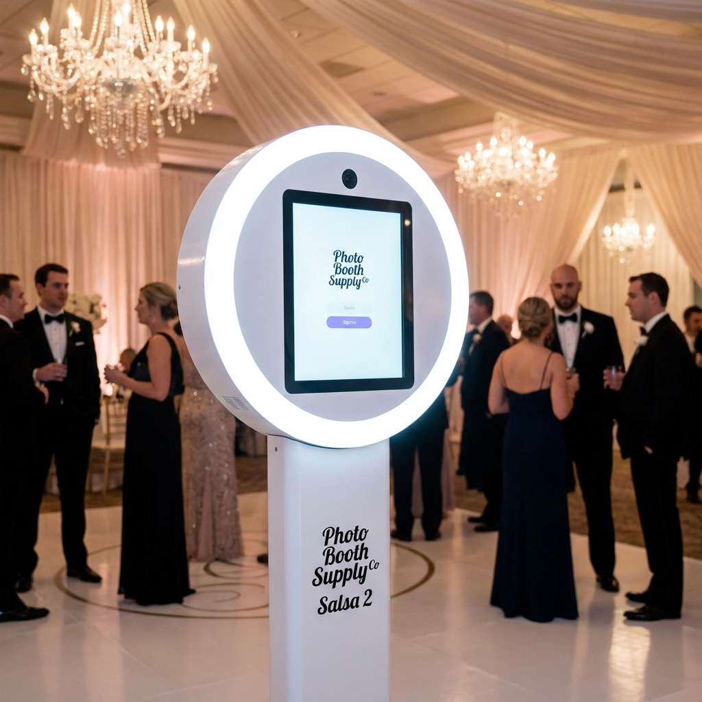 Professional Salsa 2 photo booth with props, backdrops, and instant prints.